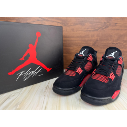 The Air Jordan 4 Retro ‘Red Thunder’, also known as 'Crimson', features familiar color blocking that recalls the coveted ‘Thunder’ colorway, originally released in 2006 and subsequently reissued in 2012. The mid-top sports a black nubuck upper with contrasting pops of crimson in lieu of the older shoe’s Tour Yellow accents. They appear on the sneaker’s molded eyelets, interior tongue, quarter panel, throat and midsole, which packs visible Air-sole cushioning under the heel. Jumpman branding decorates the tongue tag and heel.